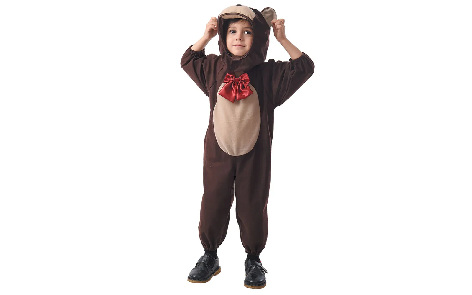 Bear costume for younger children. Available in two sizes 80-92 cm and 92-104 cm. Contents: suit with hood (shoes not included).