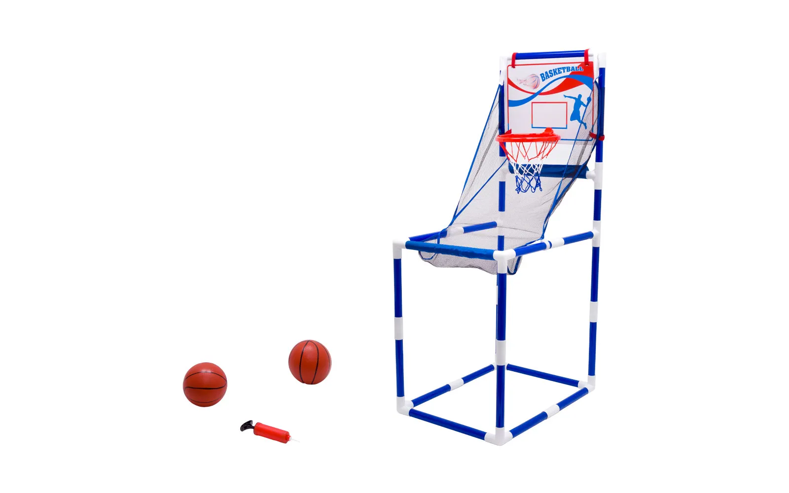 FUN AND ACTION ON THE BASKETBALL COURT! Spice up your free time with an exciting game of basketball! This set is a great choice for all young athletes who want to improve their basket shooting skills and enjoy a dynamic game with friends or family. ADJUSTABLE HEIGHT TO GROW WITH THE CHILD: the stand is adjustable to two different heights, allowing adjustments according to the child’s age and skills, suitable for outdoor or indoor play. COMPLETE GAME SET: includes a basketball backboard, durable net hoop and stable stand (dimensions: 120 x 60 x 44 cm), two basketballs for immediate play, included pump for easy ball inflation. SET CONTENT: basketball backboard with hoop and net, adjustable stand, 2 basketballs, pump. Encourage your child to spend time actively and develop sports skills – the basketball set will provide hours of fun and movement!
