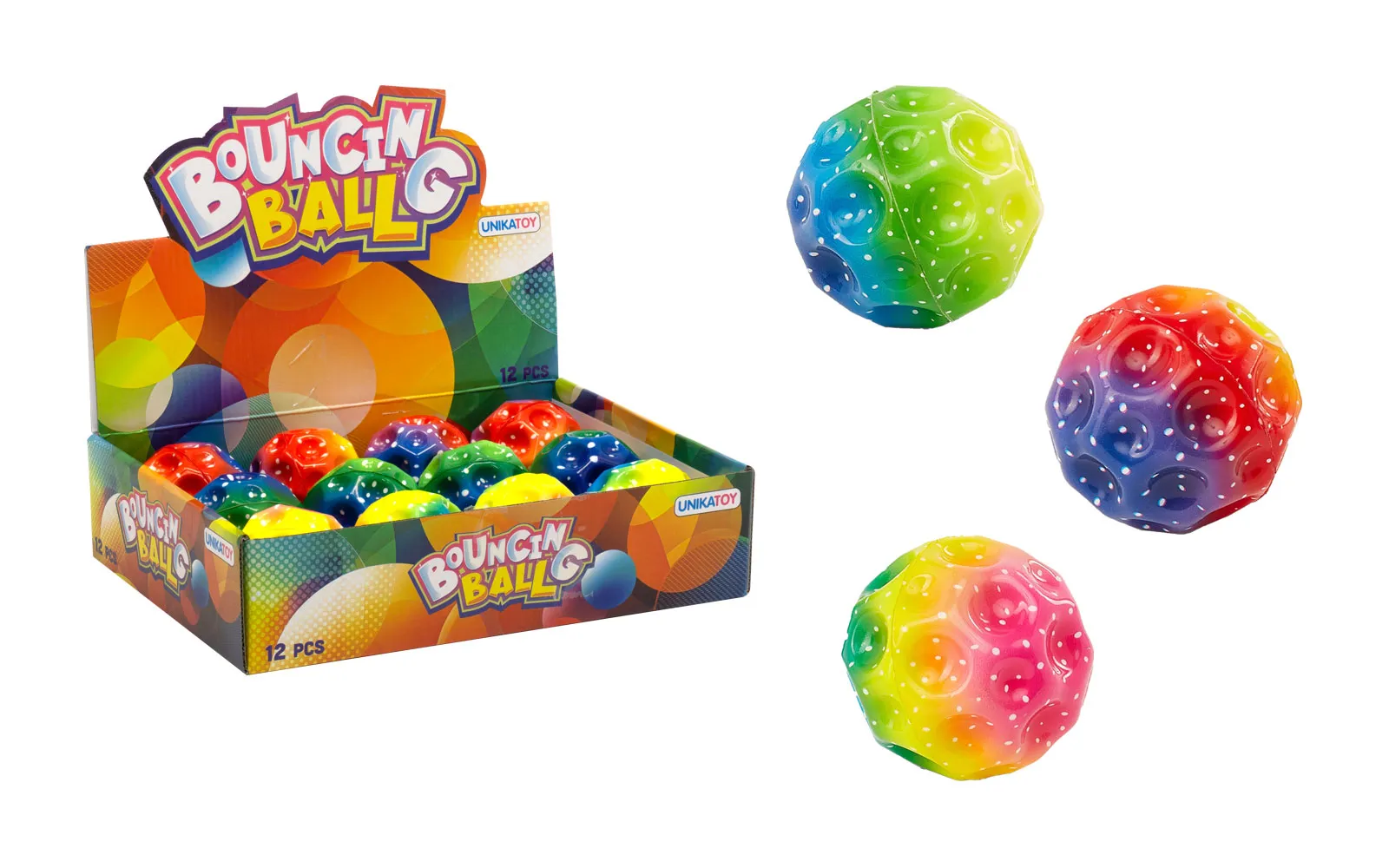 The Bounce ball, Unikatoy, has a diameter of 7 cm. Available in vibrant, colorful colors.