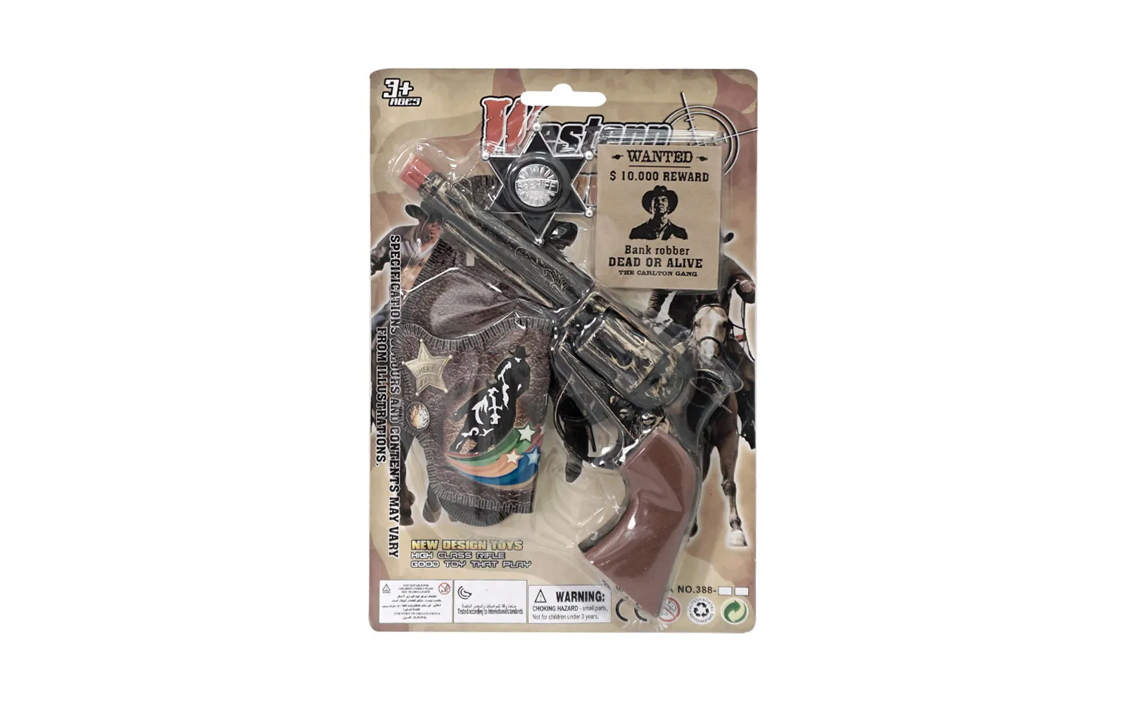 The cowboy set includes a gun with storage attachment and a sheriff’s badge.