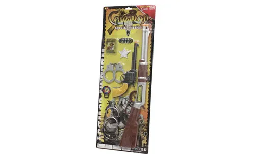 The set includes a western rifle and various accessories for play and entertainment. The rifle is not battery-operated.