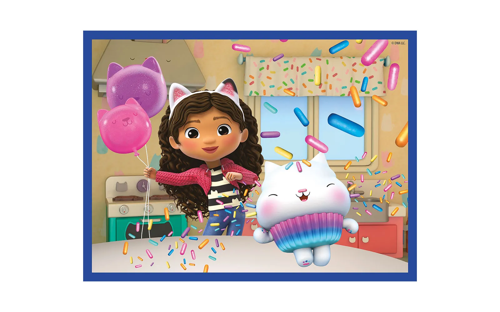 Cubes, 12 pieces, Gabby’s dollhouse. The set includes 12 cubes, with which children can assemble the motif of popular characters from the animated series Gabby’s dollhouse.