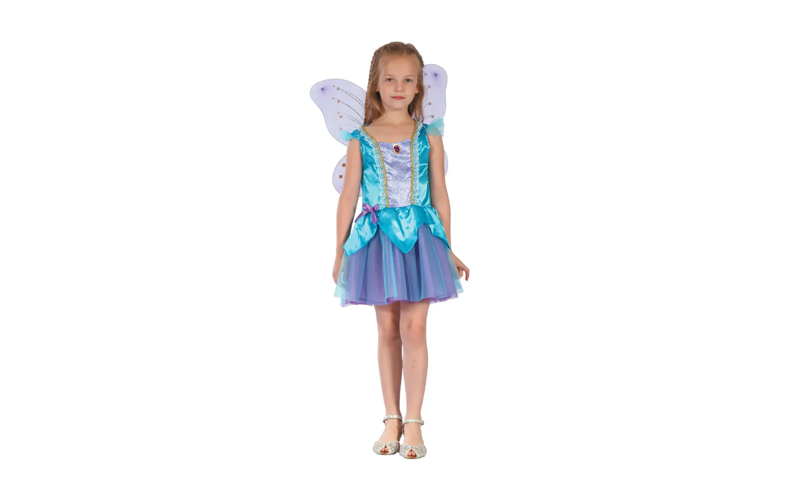 The children’s carnival costume includes a dress and wings (shoes are not included). Size S (110-120 cm), M (120-130 cm) and L (130-140cm).