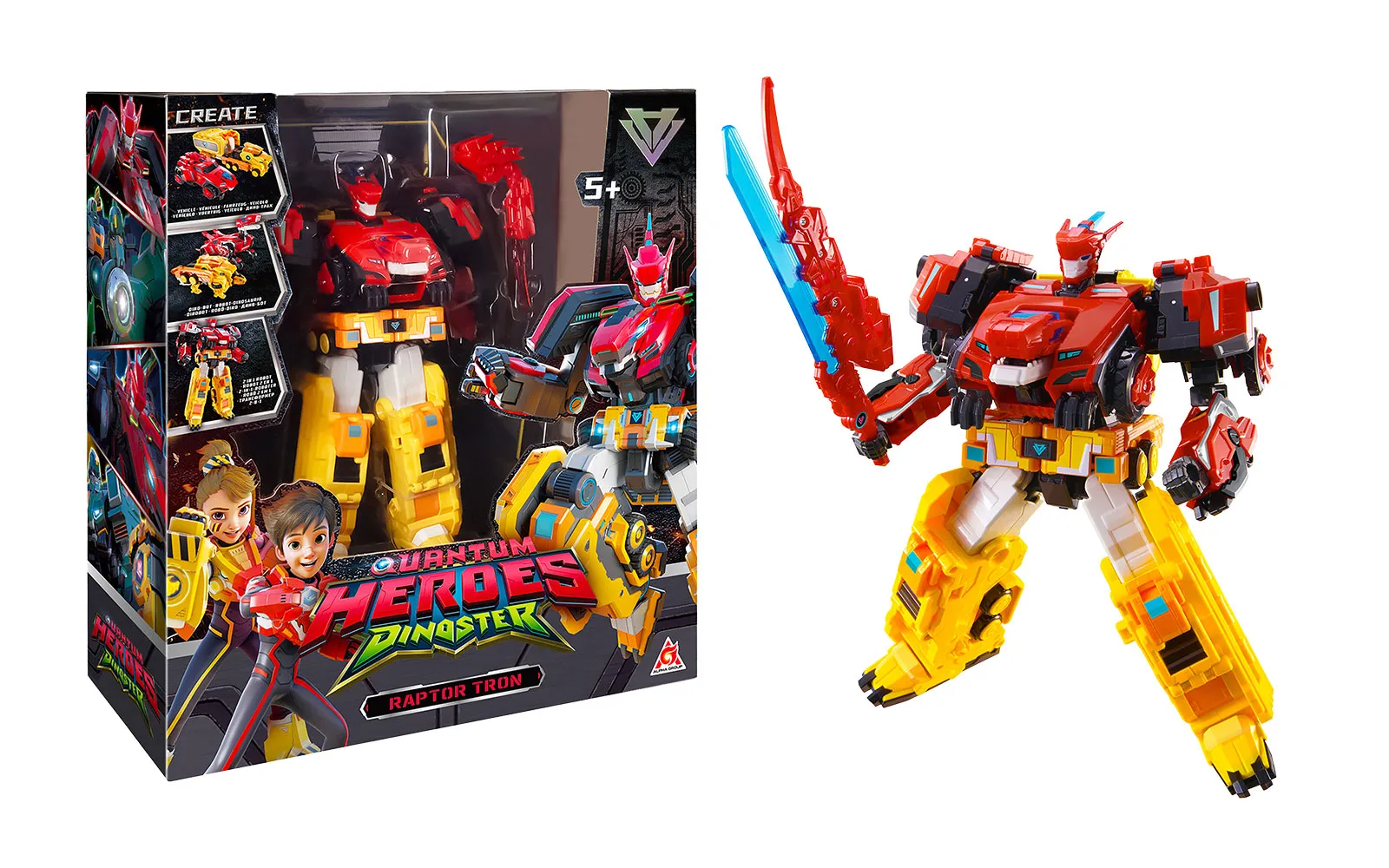 Discover the amazing world of dinosaurs with the Dinoster team! Through their adventures, four friends overcome great challenges to protect the dinosaurs. Welcome to the Dinoster team! Explore the world of dinosaurs and embark on an adventure with the large raptor Tron, Dinoster. Study and save dinosaurs with Raptor Tron! He is brave and can easily connect with dinosaurs. The transformation robot can become a dino truck, a dino robot, or 2-in-1, depending on your choice. You can easily transform him into a car or a dinosaur. The robot also has a lot of movable parts and is compatible with other sets. The height of the robot is 38.5 cm.