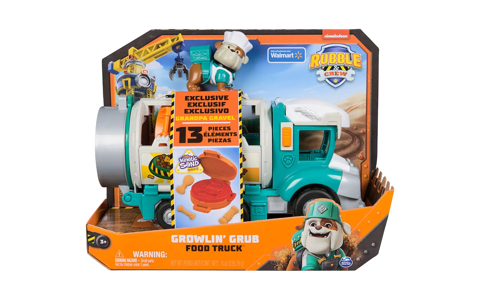The Growling Grub, Rubble&Crew, Paw Patrol, Spin Master truck is the perfect choice for all construction adventures. It includes a variety of tools and kinetic sand.