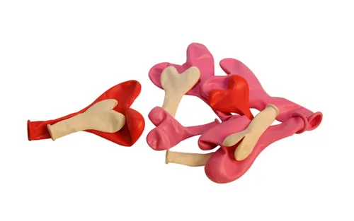 The shape of the heart is an inflated balloon in red, pink or white color. There are 15 balloons in the bag.