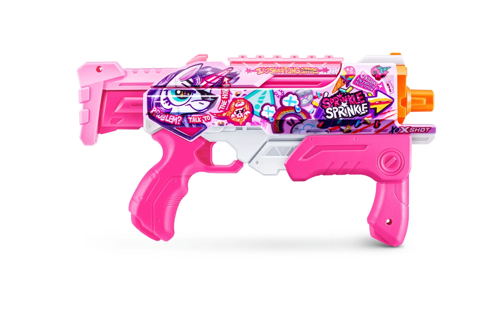 Water gun Hyper Skins Fast Fill, X-Shot, recognized brand Zuru. The water gun is 35 centimeters long with a capacity of 500ml, and filling is easy and fun – open the cap, submerge it in water, close the cap and you’re ready for water fun – all in just one second! Water jets have a reach of up to 10 m! Available in three different motifs.