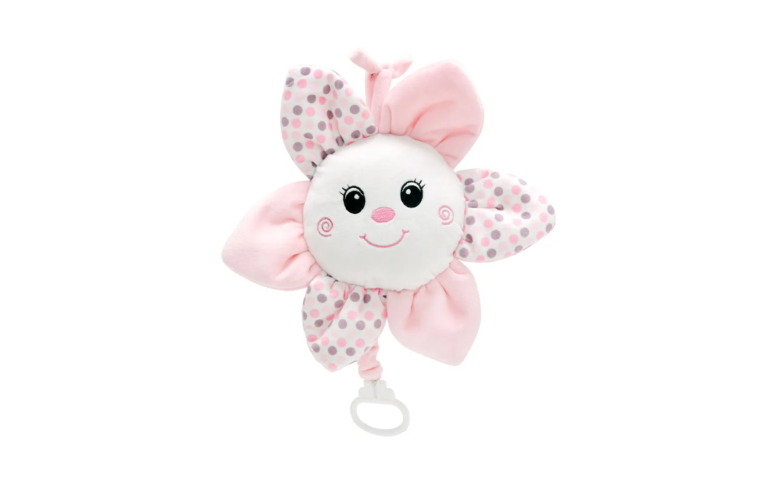 A lovely little flower in pink or blue color. The flower is 28 cm in size and has a string for hanging. When you pull on the handle, a lullaby plays, carrying your baby into the world of peaceful dreams.