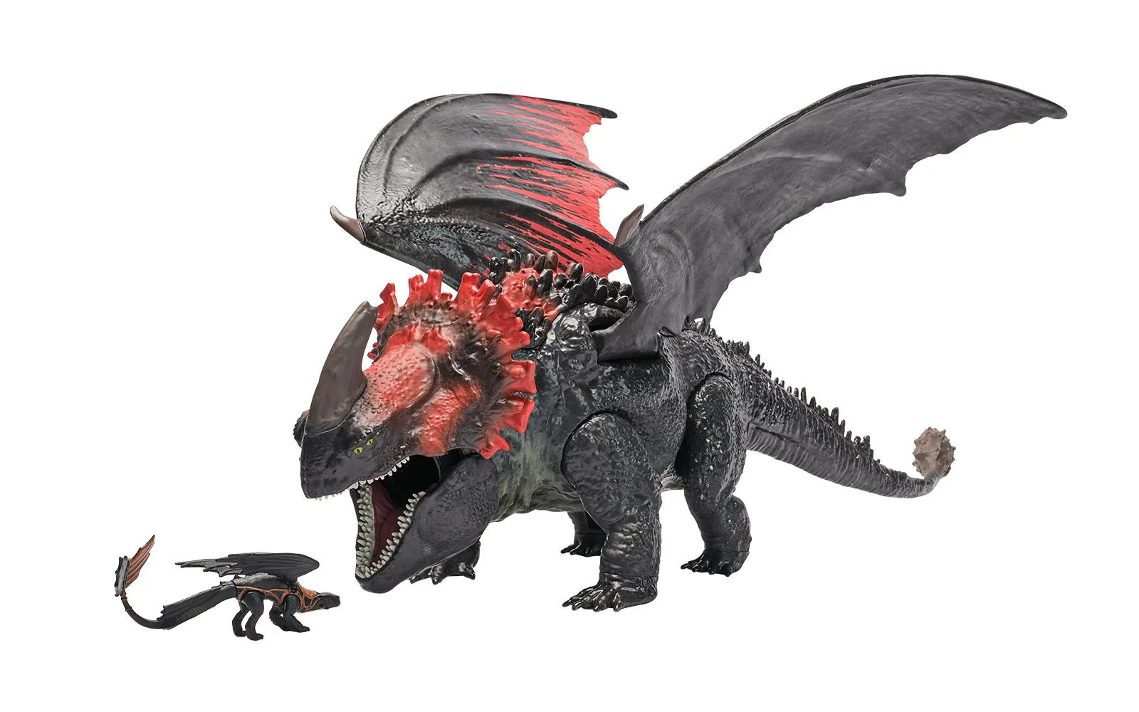The Red Death Chomping Rampage dragon toy brings thrilling dragon action to real life. With the press of a button, Red Death flaps its wings and opens its mouth for an attack – ready for an exciting game. The toy includes an exclusive mini Toothless figure, which you can place in the mouth of Red Death for a bite surprise. After the game, you can rescue Toothless and other mini dragons (sold separately) from Red Death’s secret belly.