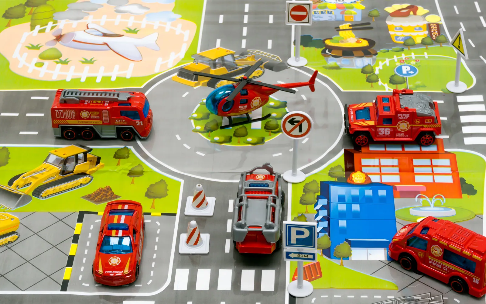 Set of fire trucks in a suitcase