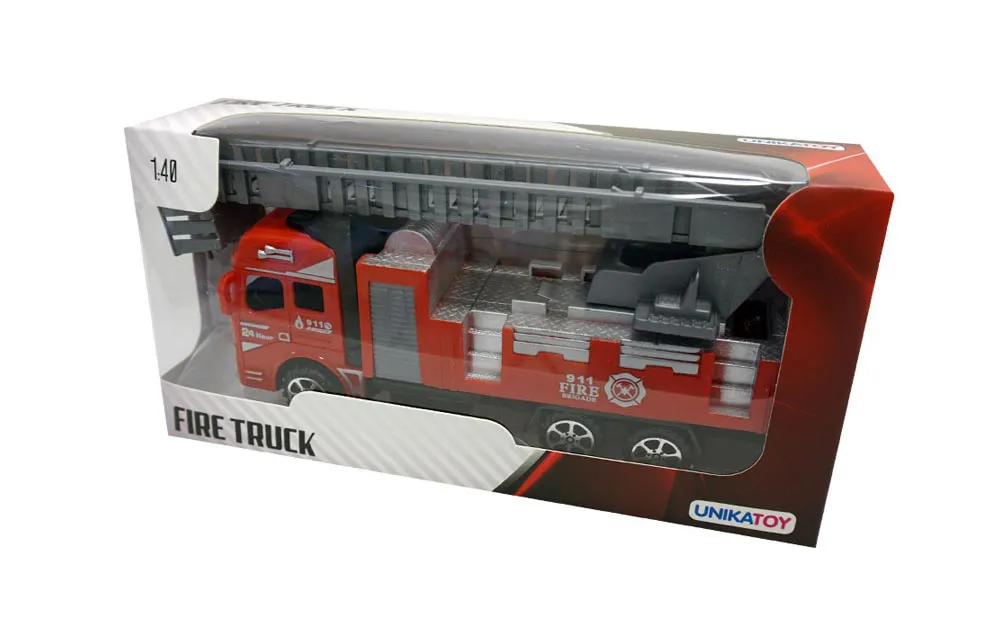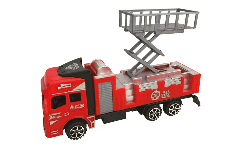 20 cm friction fire truck of two different styles with movable ladder.